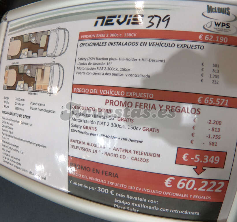 WC con ducha independiente, WC con ducha separada, 4-5 plazas en marcha, 4 plazas noche.