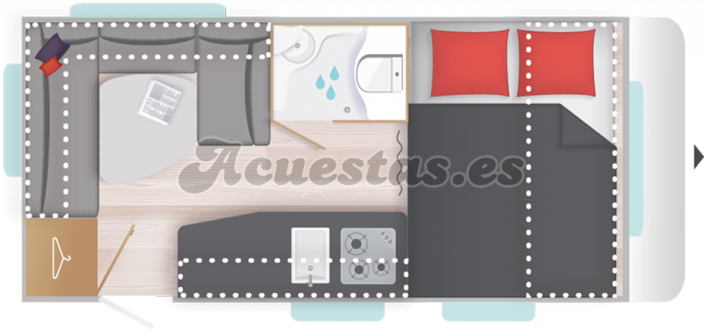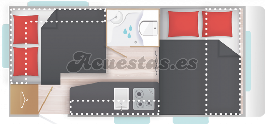 WC con ducha integrada, 4 plazas en marcha, 4 plazas noche.
