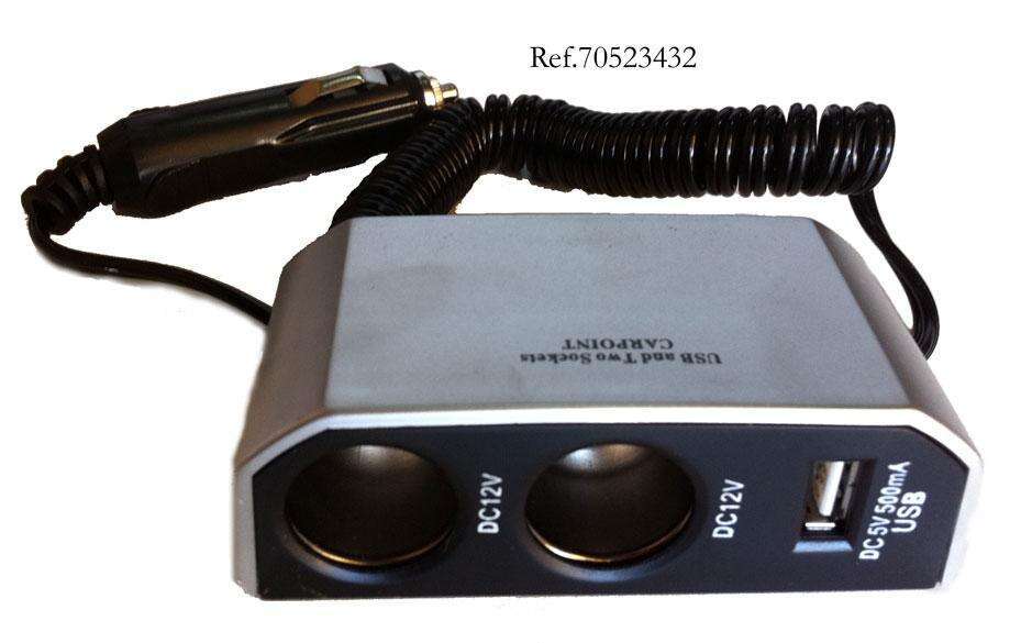 Toma de mechero con alargador, dos salidas a 12v y puerto USB.